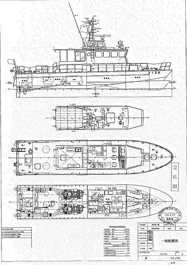 (Registered Size) Length: 19.5 m Beam: 4.3 m Draft: 2.2 m