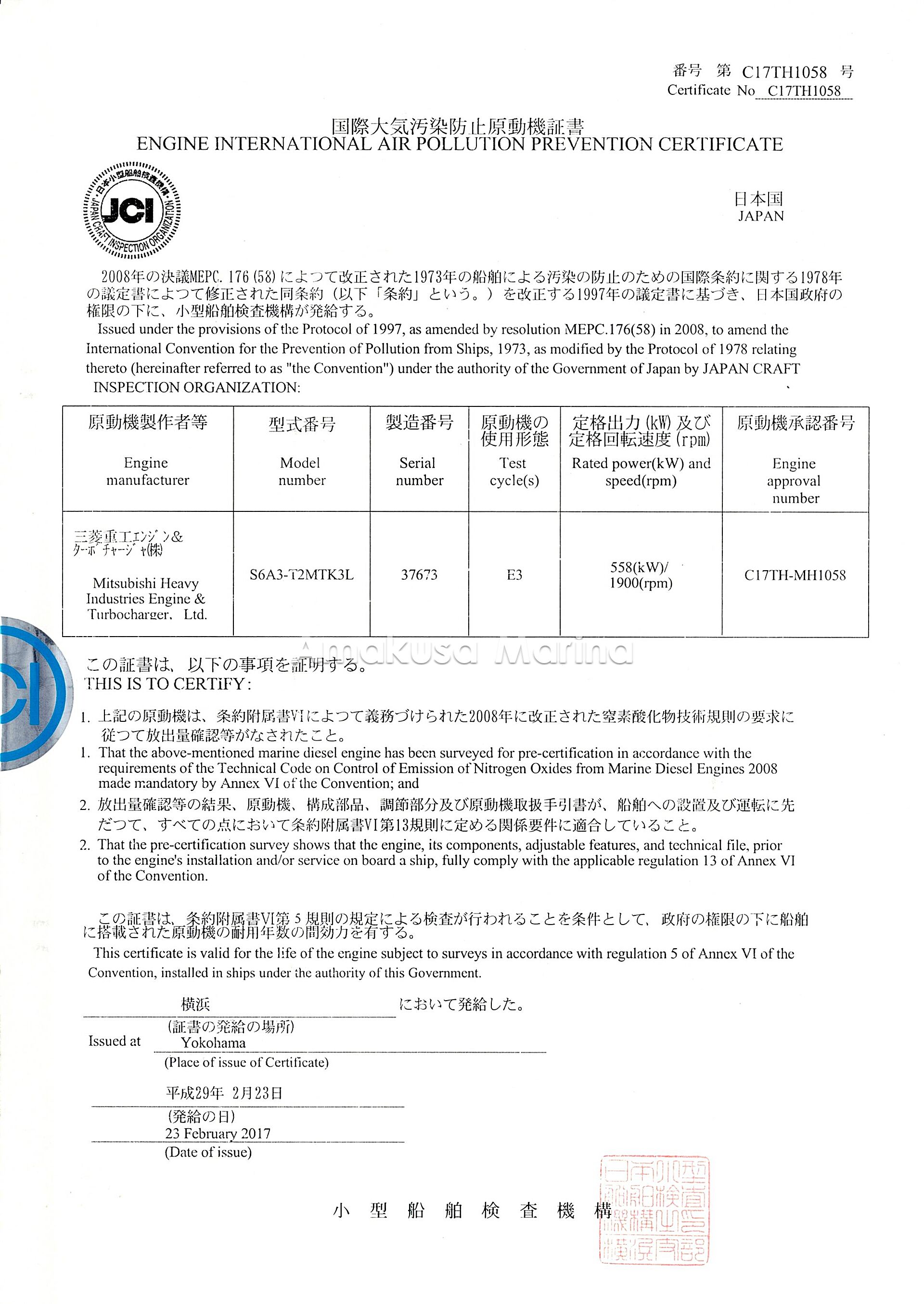 MITSUBISHI S6A3-T2MTK3L 735hp(3.93)IMO2