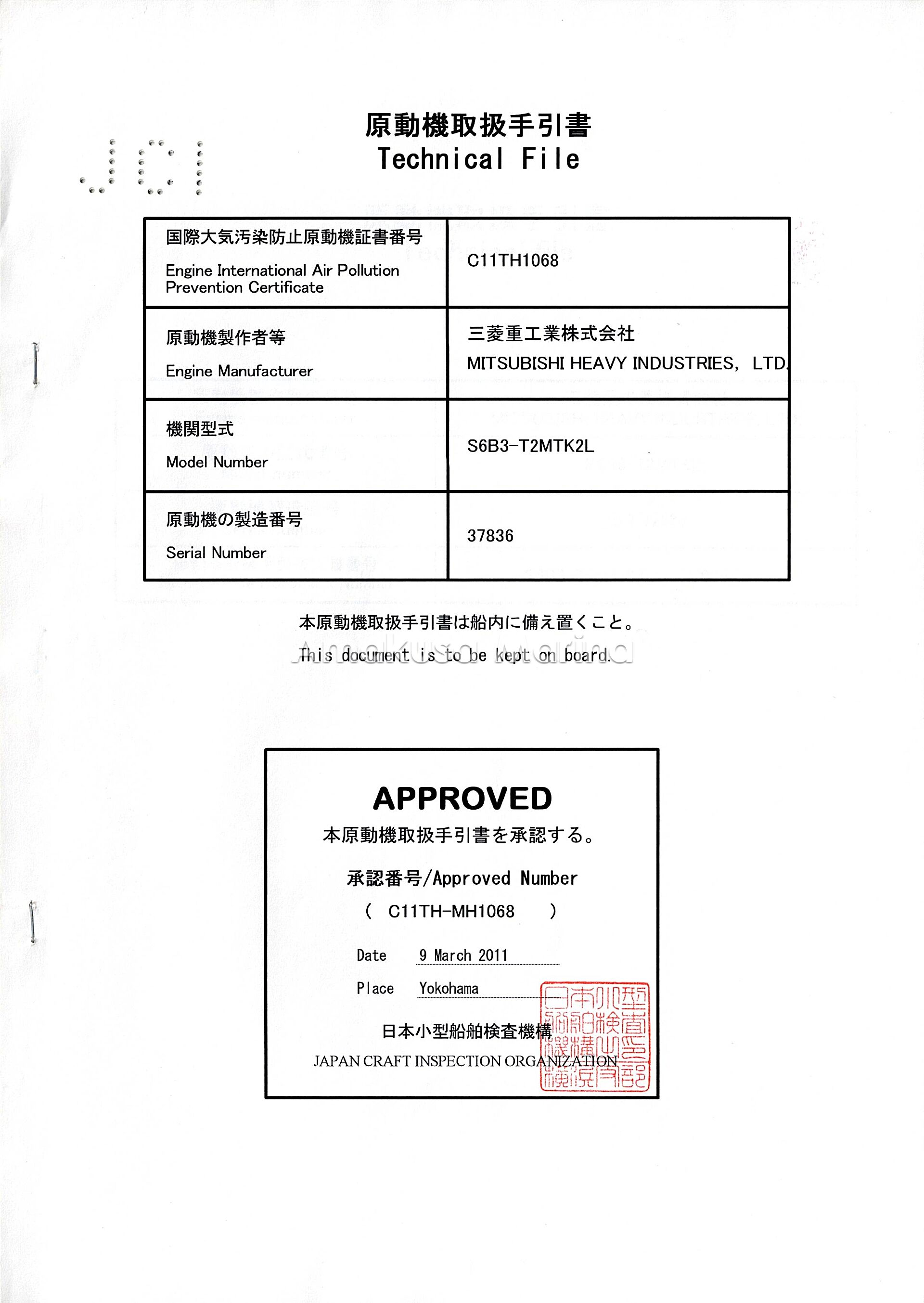 No.5965 MITSUBISHI S6B3-T2MTK2L 650ps (2.55)IMO2