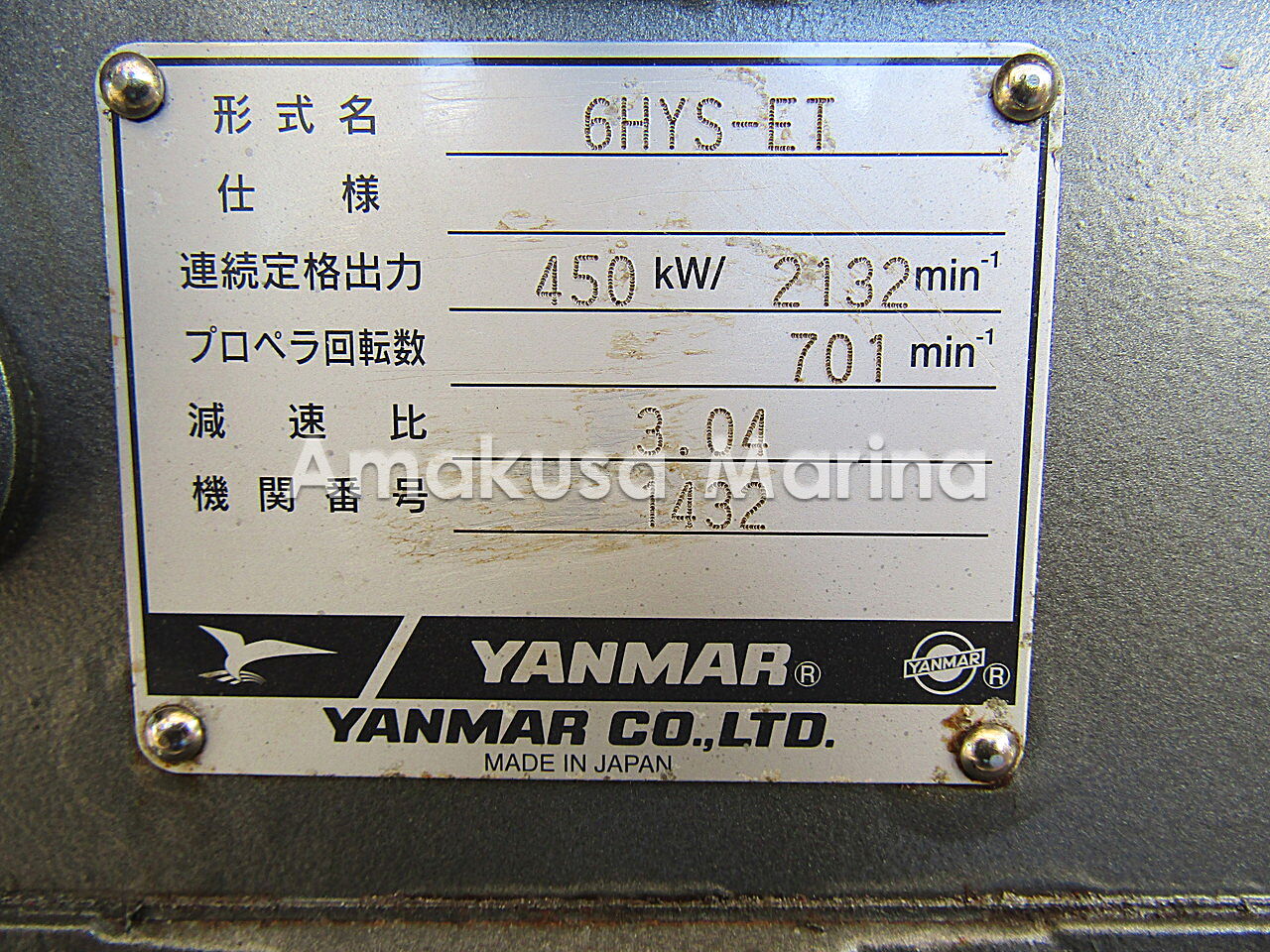 No.6052 YANMAR 6HYS-ET 612hp(3.04/4.00)